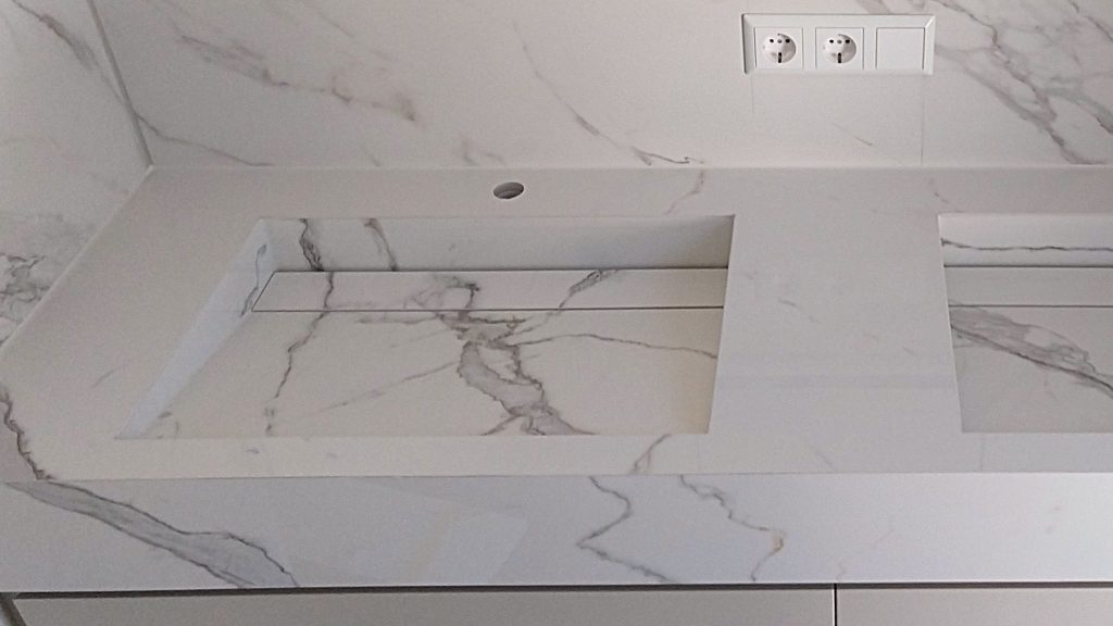 Aus Granit, Marmor, Agglo, Quarz in verschiedensten Farben.